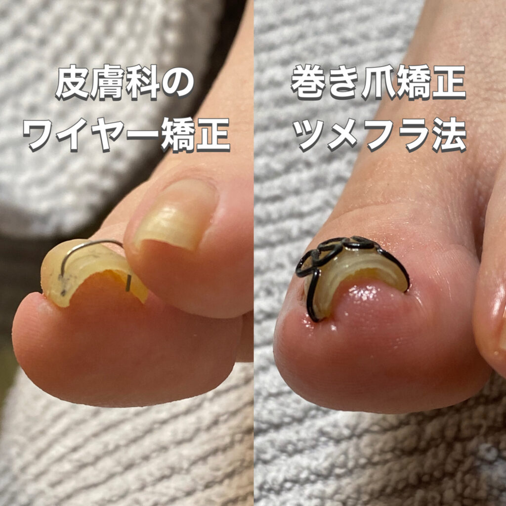 再発し皮膚科でワイヤーの矯正をしていたのですが、靴に圧迫されて痛みや出血する事もあり、当サロンにご来店頂きました。