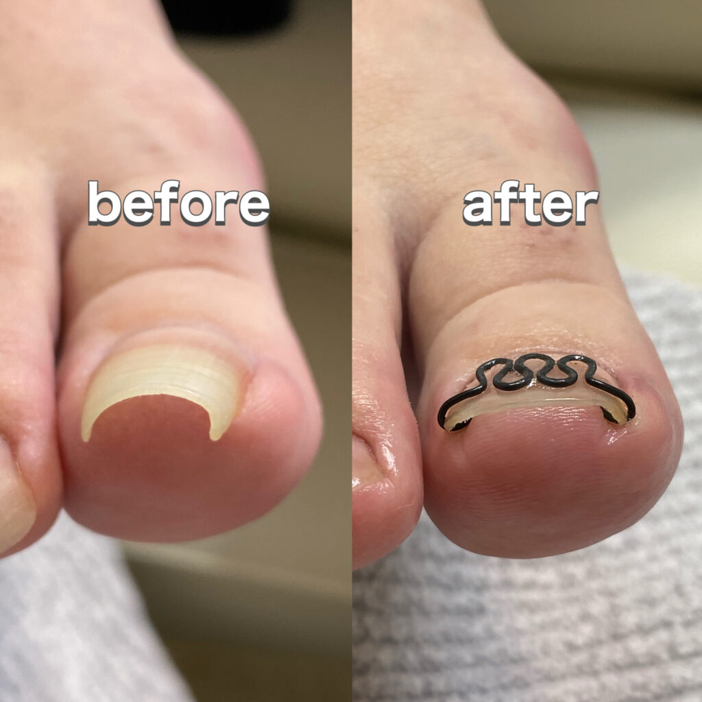 6. 審美的な効果: 爪の形が整うため、見た目にも改善が見られる場合があります。巻き爪が目立たなくなることにより、