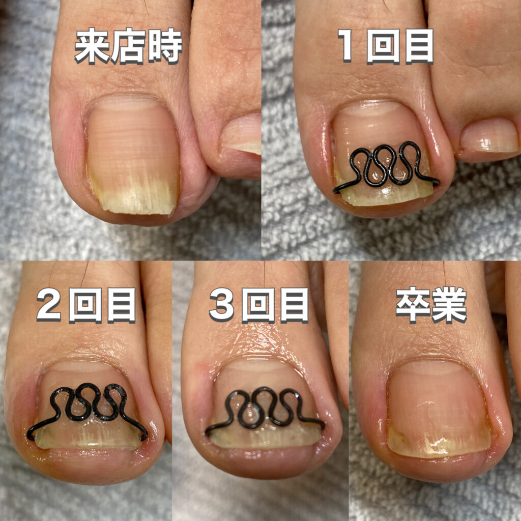当サロンの巻き爪矯正ツメフラ法を施術して、