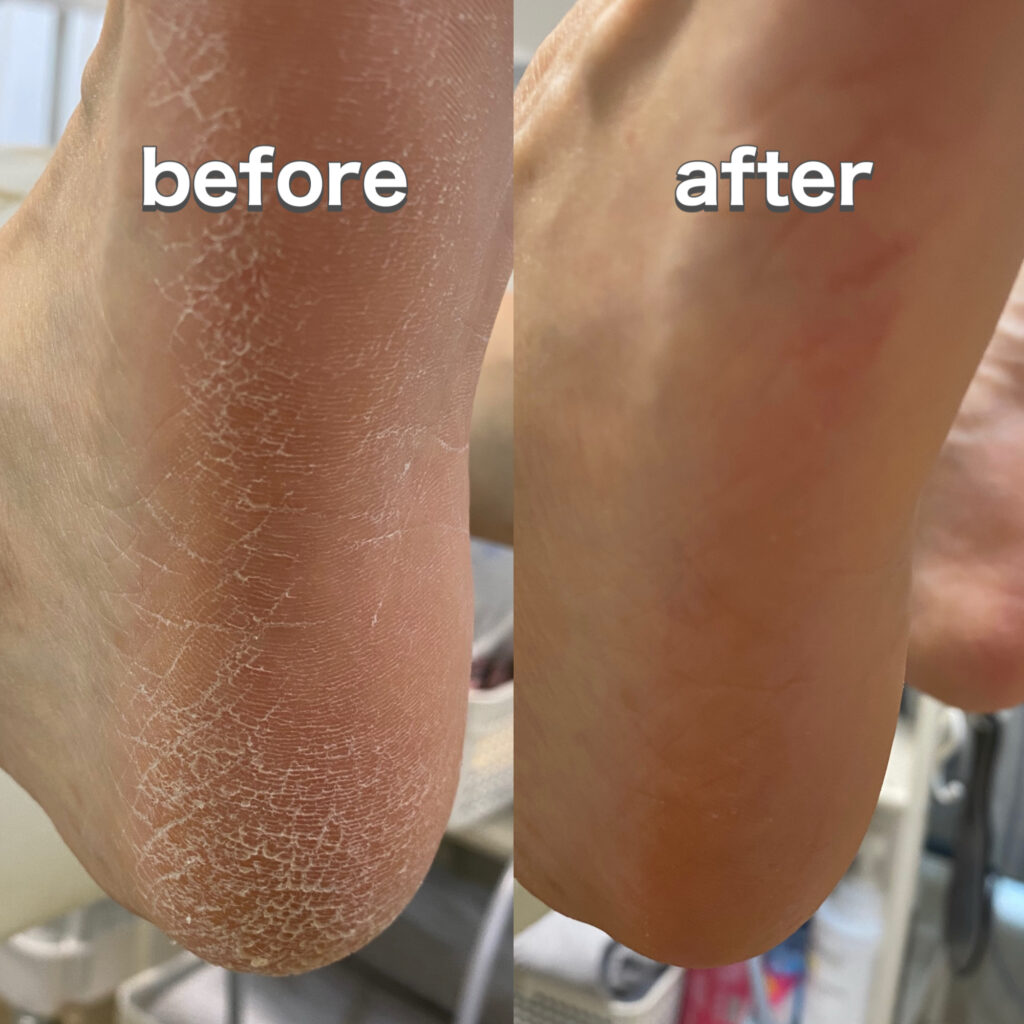厚くなった踵は、フットケアでリセットしないとひび割れて出血する事もあります。
