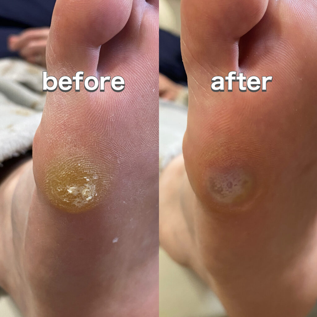 自分で削ると悪化したり、芯が残って再発しがちなウオノメ。